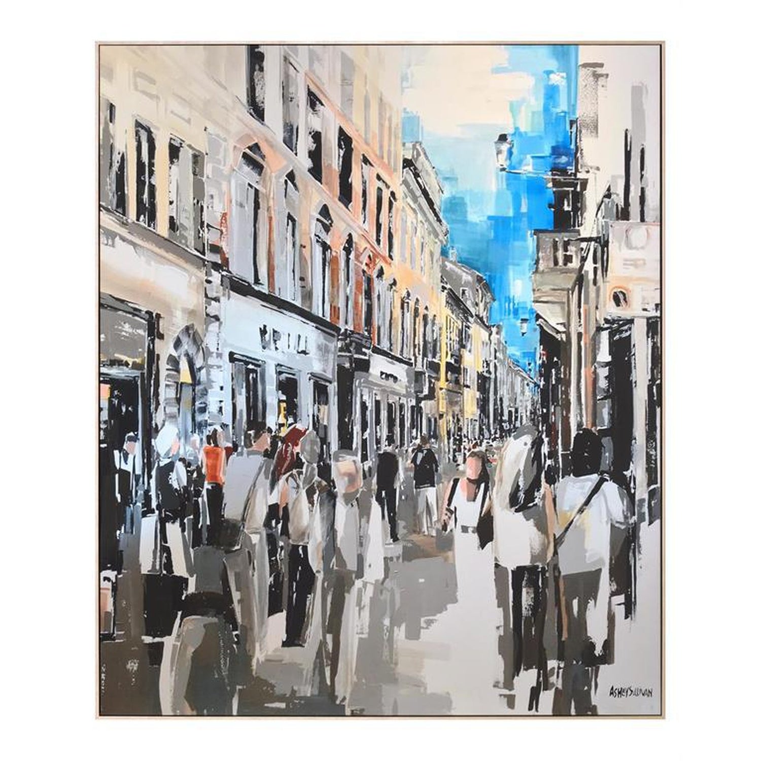 This beautiful city scene by artist Ashley Sullivan highlights the brilliant blue sky.
