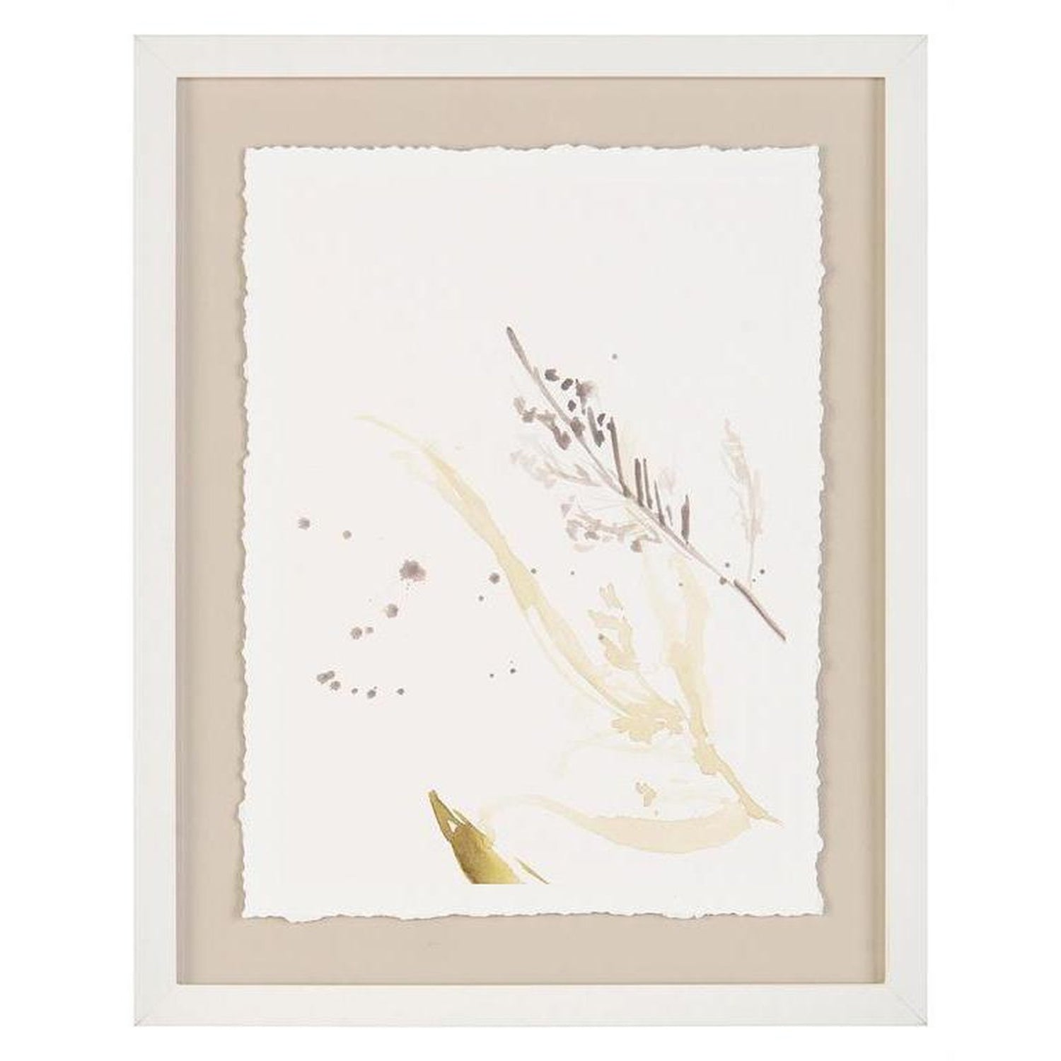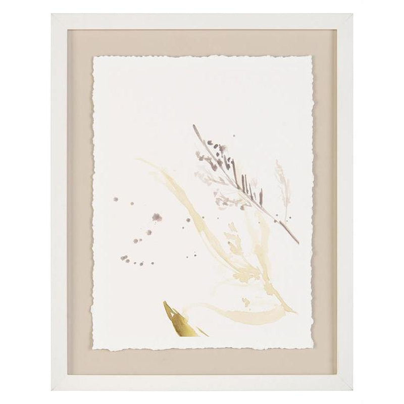 Each artwork, mounted on a soft taupe, is framed in a crisp white molding.