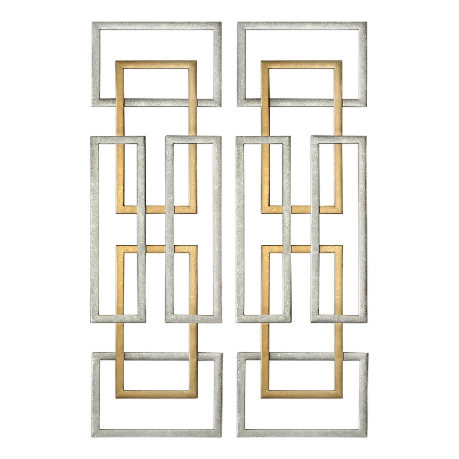 Overlapping, Geometric Rectangles Creating A Contemporary Look In A Two-toned Finish Combination of Lightly Antiqued Gold And Silver Leaf.