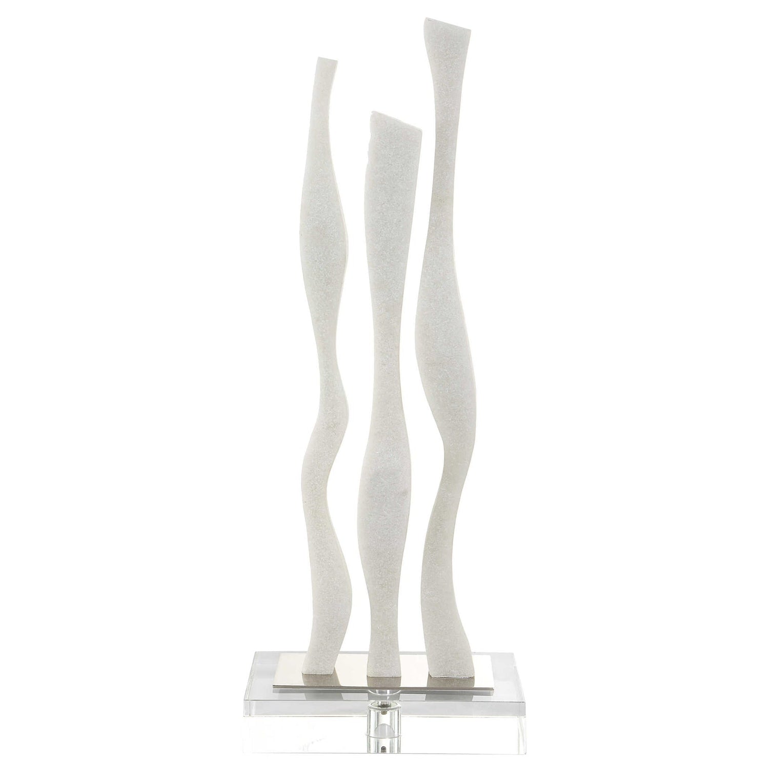 Inspired by striking works of modern art, this abstract sculpture is crafted from granulated white marble, accented by an elegant crystal food and metal accent.