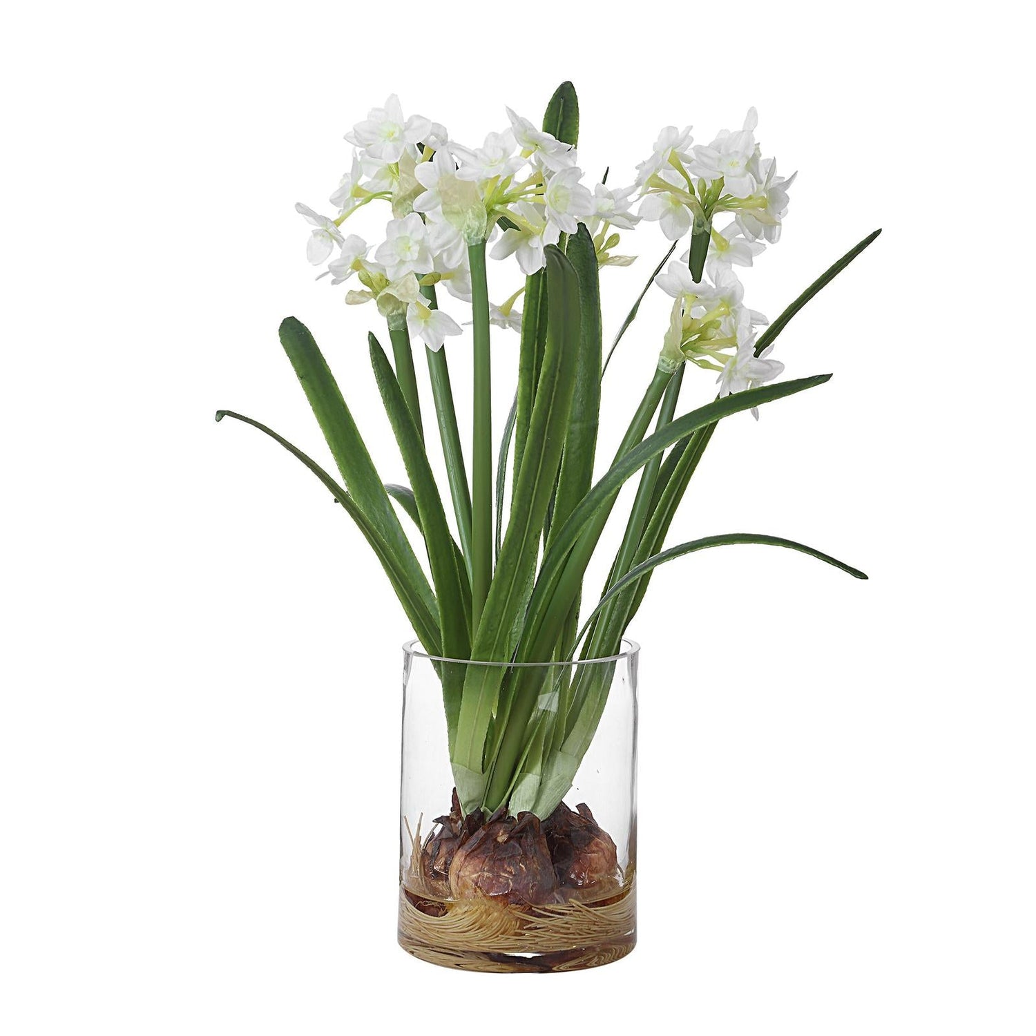 Garden Bulbs Of Fresh Rcissus Paperwhite Daffodils Rest In A Glass Vase With Faux Water