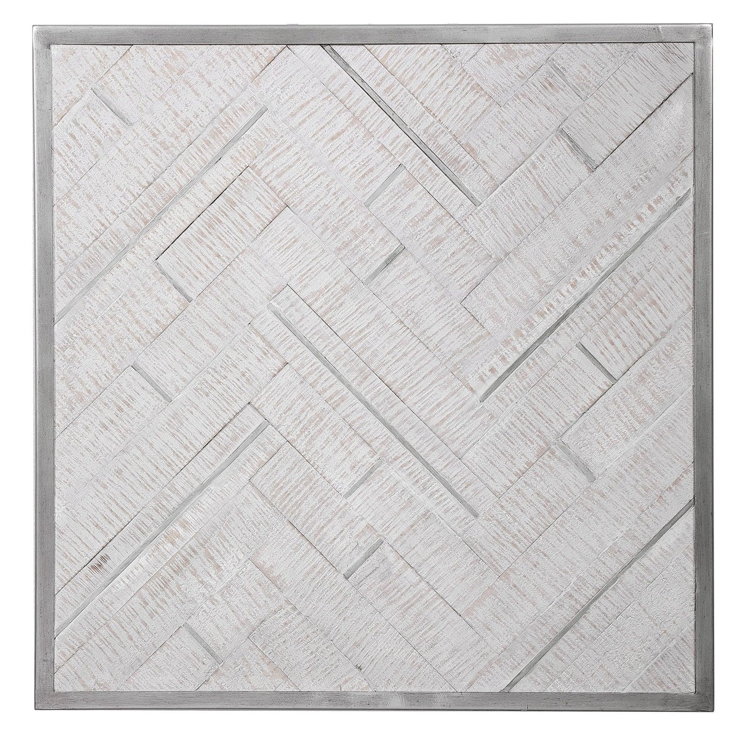 This Wood Wall Panel Personifies Modern Coastal Style With Whitewashed Pine Wood In A Classic Herringbone Pattern Accented By Sleek Silver Bar Inserts.
