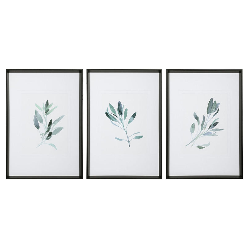 A Nod To Modern Farmhouse Style, This Set of Artwork Showcases Individual Sage Branches Printed In A Watercolor Style.