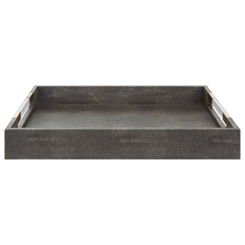 Tray Is Covered In An Elegant Gray Faux Shagreen With Clear Acrylic Handles And Aged Gold Accents.